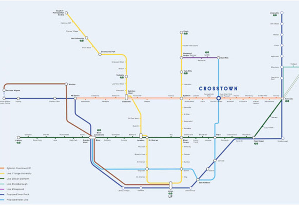 1. Commuting Options – Residents of Crosstown Condos will have many TTC regional routes running near by including 24-hour and express routes to transport riders throughout the city. Riders can connect to Eglinton subway station and arrive at Union Station in under an hour. The arrival of the Eglinton Crosstown LRT in the near future will help riders get across the city 60% faster. The Don Valley Parkway is located just down the road from Crosstown Condos, allowing for motorists to easily connect to the Gardiner Expressway or Highway 401.