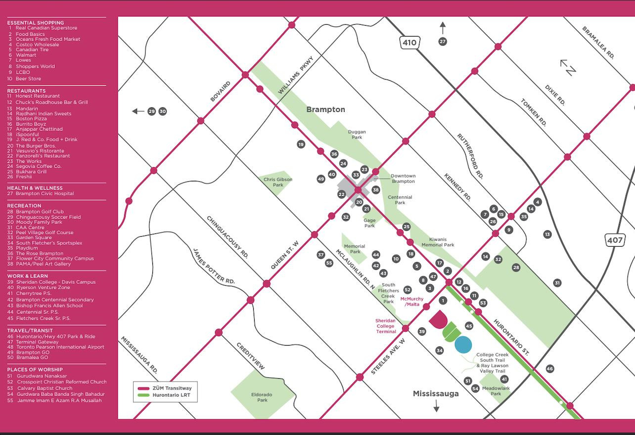 Home to a wide variety of brand name, local, and cultural lifestyle amenities, Brampton is a vibrant and exciting city to call home. Duo Condos is conveniently located in the city’s burgeoning south end, close to plenty of dining, shopping, and entertainment options. Shoppers World Brampton, home to many Big Box retailers is located within walking distance and Bramalea City Centre, the city’s premier shopping centre, home to over 300 shops and services is just 10 minutes away from home.