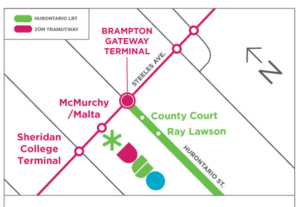 Brampton Gateway Transit Terminal is conveniently situated just a short walk away from Duo Condos. Residents will be able to access GO, Brampton, MiWay, and Zum transit routes here. The Hurontario LRT will feature 19 stops along 18 kilometers from Gateway Terminal all the way south to Port Credit. Union Station is just 45 minutes away when taking the train from Brampton GO Station located less than 10 minutes away from home.