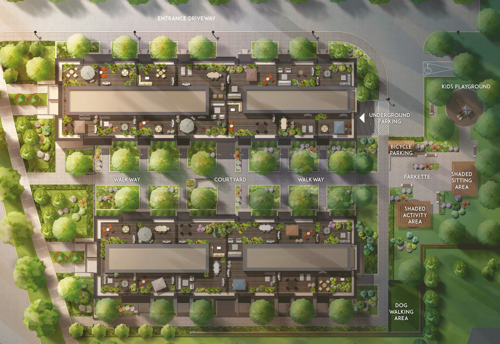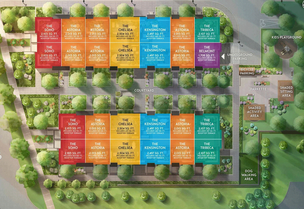 Sophisticated and luxurious 3-storey townhomes with spacious floorplans, rooftop terraces, and high-end features and finishes. Enjoy landscaped courtyards, walkways, and parks surrounding this new urban master-planned residential neighbourhood.