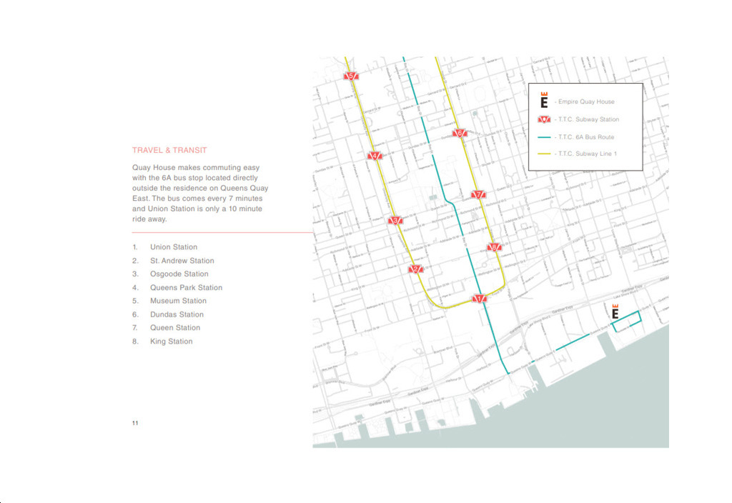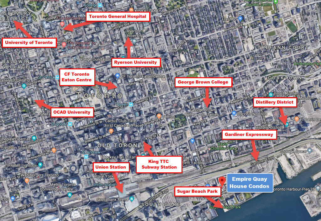 5. Highway Access – For residents looking to travel throughout the city by vehicle, Empire Quay House Condos are located just south of the Gardiner Expressway, allowing commuters access to the downtown core in just 10 minutes. Also, CondoNow acknowledges that motorists will also enjoy having seamless connections to the Don Valley Parkway north towards Highway 401.