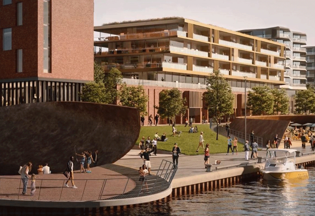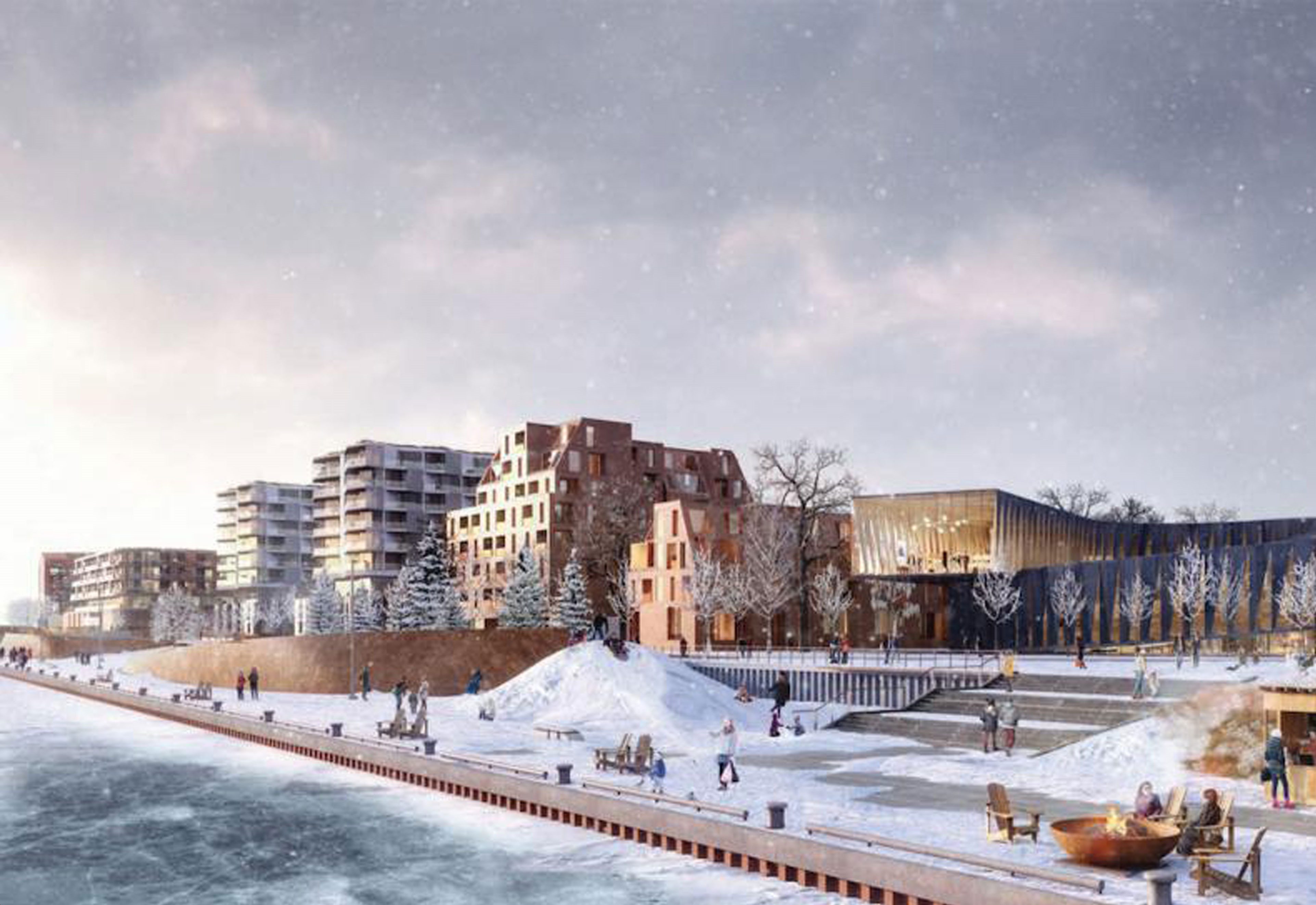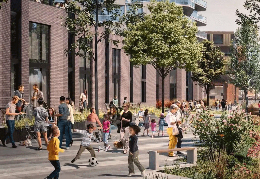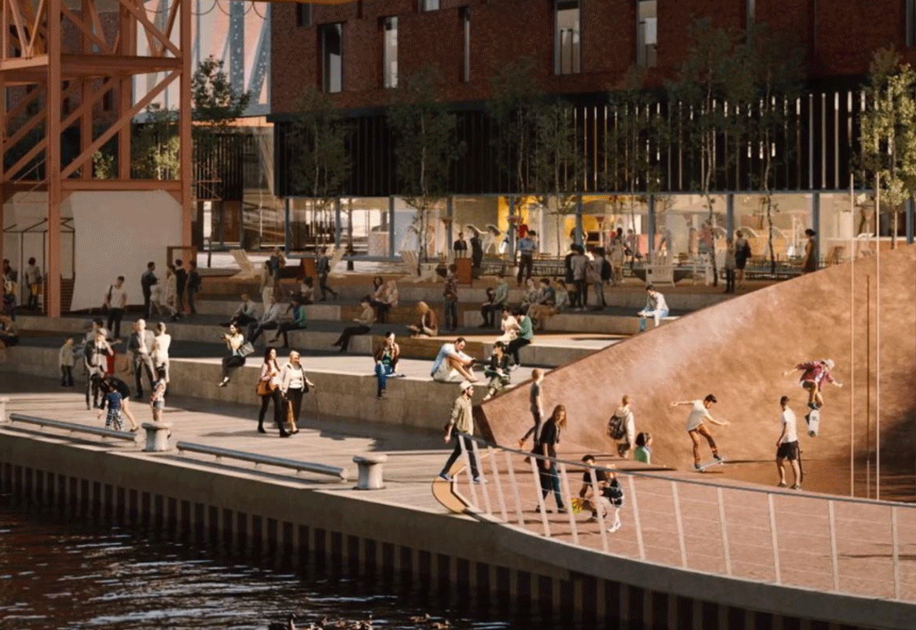 In the proposed development, 40% of the total site area will be publicly accessible open space with the addition of approximately 1.6 kilometres of additional walkable landscape connecting to the City-owned network of parks and rights-of-way at the waterfront.