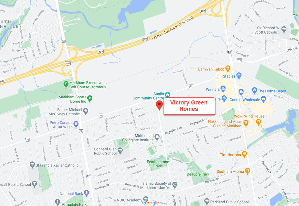 3. Family Friendly - Victory Green Homes is located in an established and family-friendly neighborhoud in Markham where many new residential projects are taking form, making it extremely attractive for young and growing families to call home. CondoNow indicates that the surrounding area is home to plenty of recreational and extracurricular options and some of the provinces’ Highest-ranking public schools and prestigious private schools. Montessori schools and early learning centres are located nearby to help form and nurture the growing minds of little ones.